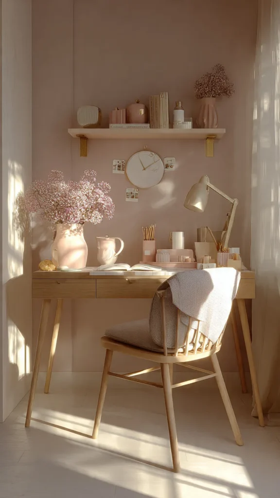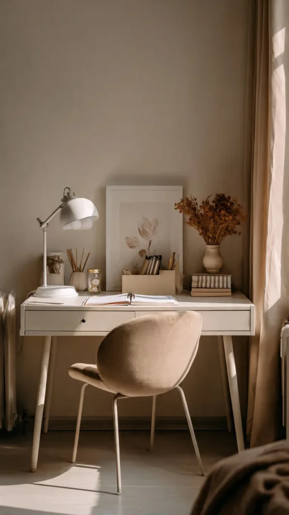 Choosing the right color palette can completely transform how your workspace feels. Soft, muted tones like beige, sage green, light grey, or pastel shades create a calming and visually pleasing environment. Instead of adding too many decorative items, focus on coordinating colors across your desk, chair, and accessories.
